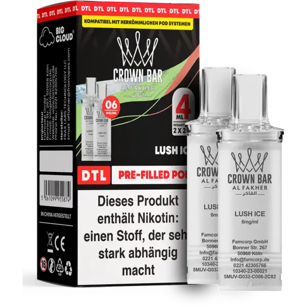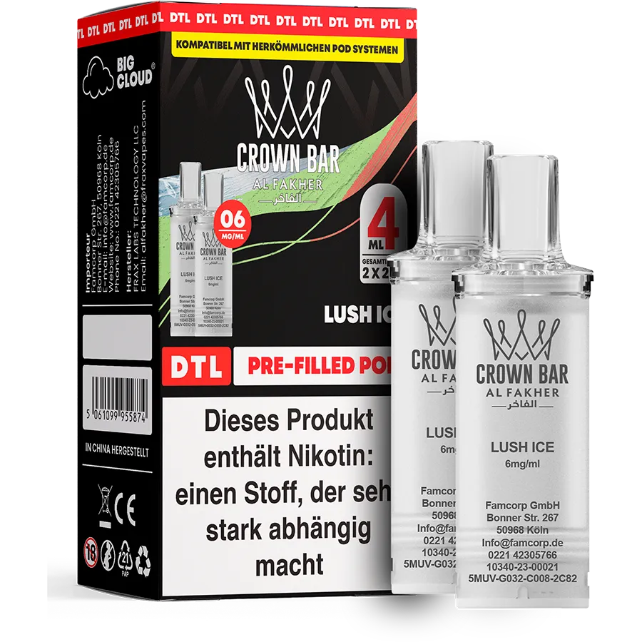 Al Fakher Pods – Lush Ice (2 %) kombinieren eine saftige, süße Wassermelone mit einer deutlichen Ice-Frische. Das Ergebnis ist ein klarer, moderner und extrem erfrischender Geschmack, der sowohl Anfänger als auch erfahrene Nutzer anspricht.