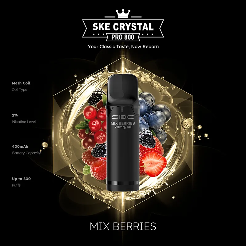 Mit Mix Berries bringt SKE einen harmonischen Beerenmix, der Erdbeeren, Blaubeeren und Himbeeren zu einem ausgewogenen, fruchtigen Aroma kombiniert.