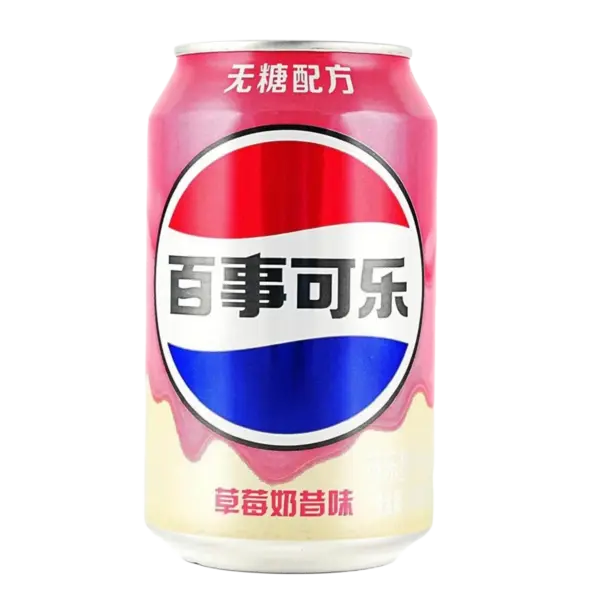 Pepsi Strawberry Milkshake Zero aus China kombiniert die klassische Cola-Basis mit einer cremigen Erdbeer-Milchshake-Note. Die ungewöhnliche Geschmacksfusion sorgt für hohe Aufmerksamkeit und spricht besonders Import- und Trendfans an.