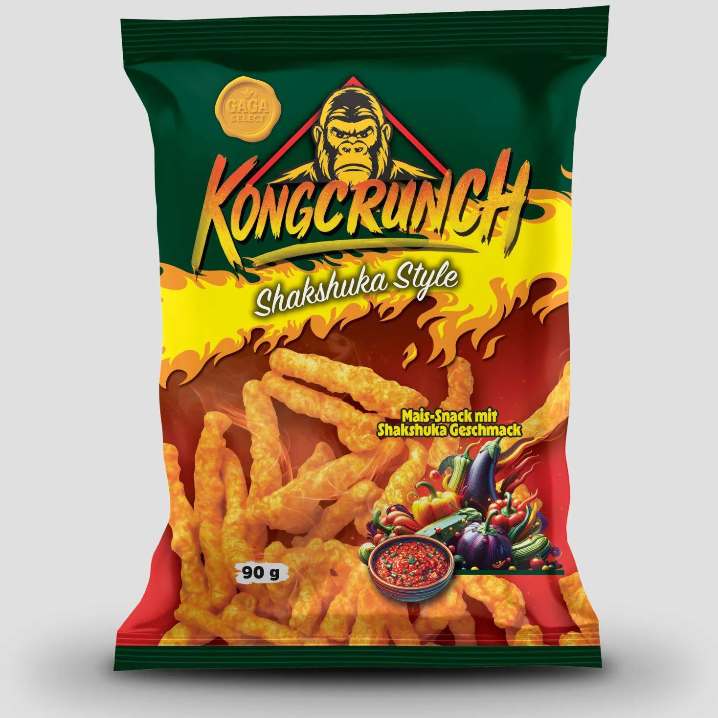 Kongcrunch Shakshuka Style bringt die typische Würze des orientalischen Klassikers in Snackform. Tomate, Paprika und ausgewählte Gewürze sorgen für einen herzhaften, aromatischen Geschmack mit milder Schärfe – markant, aber massentauglich.